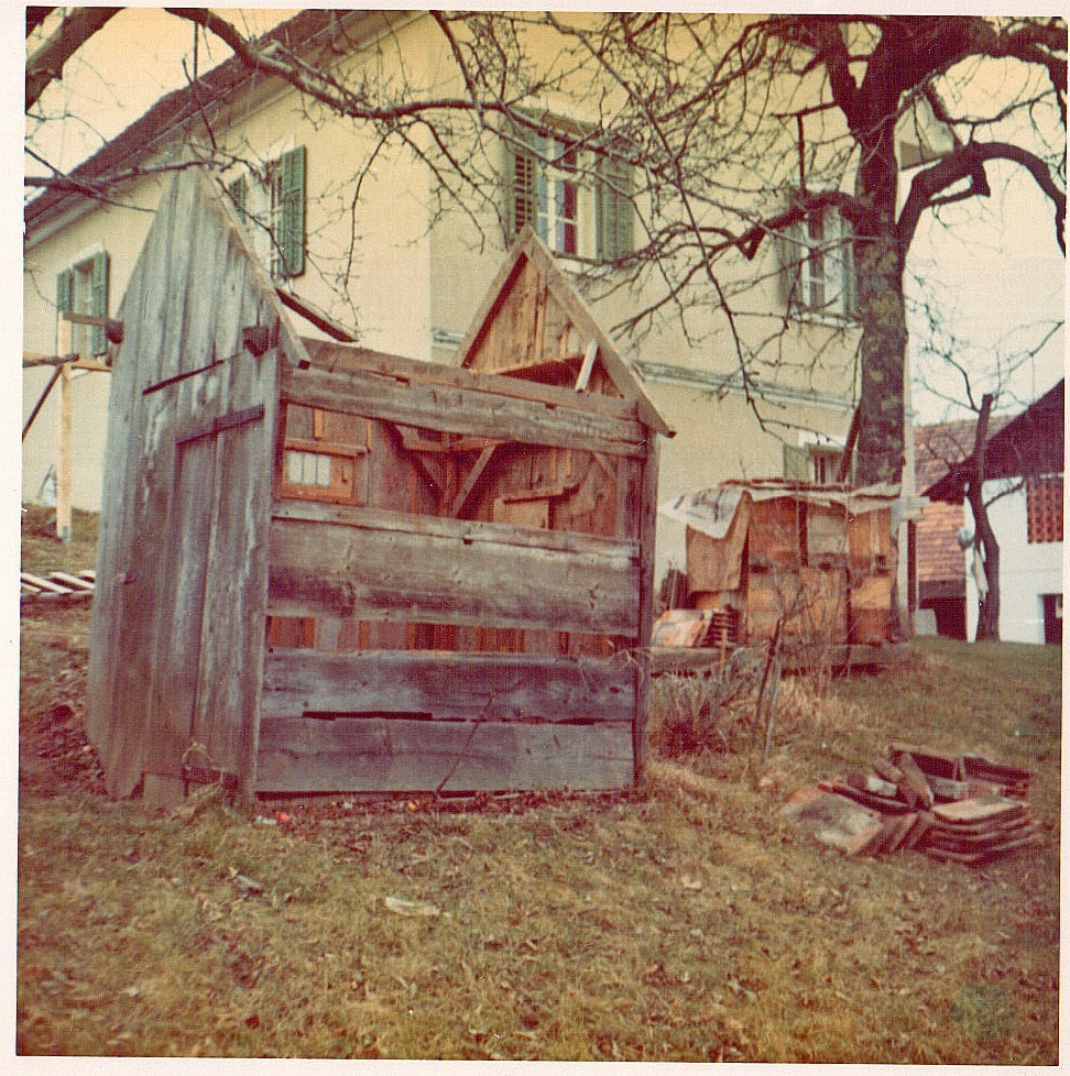 Renovierungsarbeiten beim Bienenhaus in den frühen 1970igern.